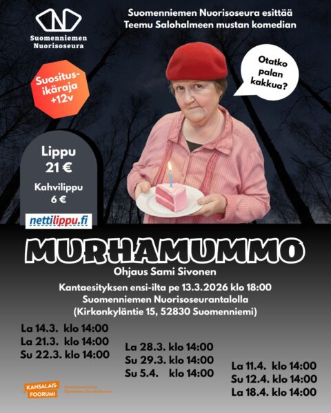 Murhamummo on Teemu Salohalmeen käsikirjoittama komedia. Vaikka teema kuulostaa synkältä, tummansävyinen huumori pitää tunnelmaa keväänä.